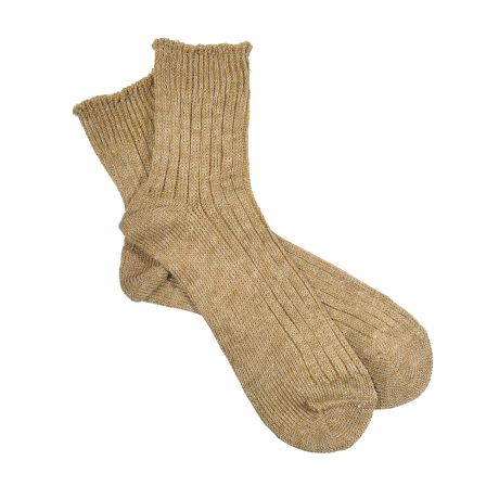 リネン糸で編み立てたシンプルなショート丈のソックスです。