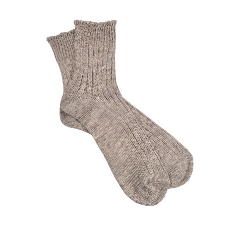 リネン糸で編み立てたシンプルなショート丈のソックスです。