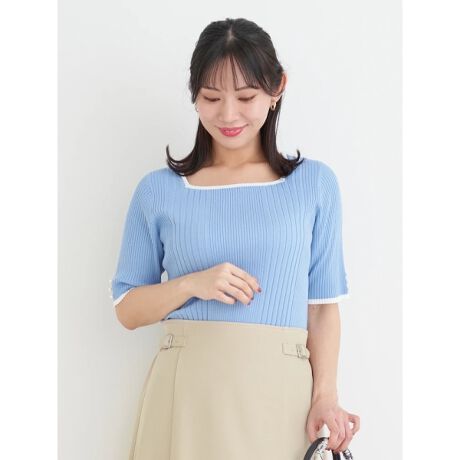 スクエアネックが首元をすっきりと見せてくれる大人のキレイめトップス