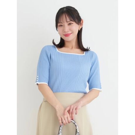 スクエアネックが首元をすっきりと見せてくれる大人のキレイめトップス