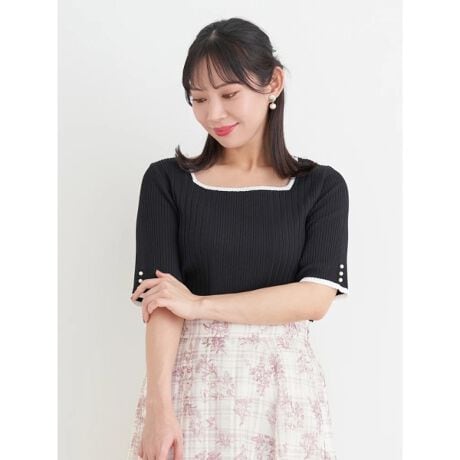スクエアネックが首元をすっきりと見せてくれる大人のキレイめトップス