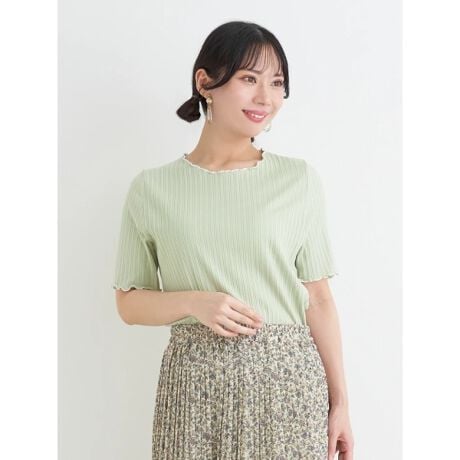 1枚でお洒落見えするメローデザインのトップスはシンプルなので柄のパンツやスカートとあわせてもごちゃつかず、シンプルTシャツとは違う華やかさも◎。