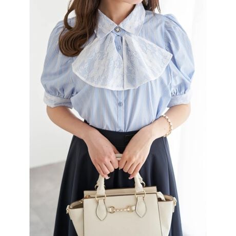 レース重ねボウタイブラウス
