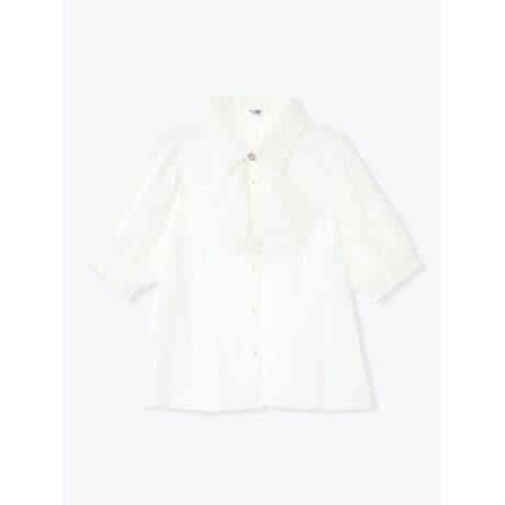 [型番:26550732190]レースを重ねたボウタイデザインが目を引くブラウス。程よくゆとりのあるシルエットで、オンオフ問わず取り入れやすい一枚です。テーパードパンツやセンタープレスパンツを合わせるとバランスよくまとまり、タイトスカートと合わせるときれいめな印象に仕上がります。モデル(B柄着用)身長:165cmMサイズ着用