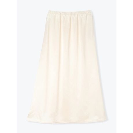 [型番:26550734633]シワ感のあるサテン素材が大人びた風合いを放つロングスカート。裾に向かってなだらかに広がるシルエットで、女性らしさを演出します。ゴム仕様のウエストがラクな着心地を実現。カットソーやシャツと合わせたコーディネートもおすすめです。モデル(グレー着用)身長:160cmMサイズ着用