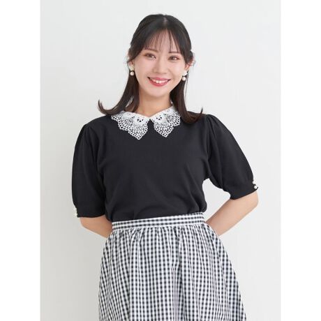 ・キラキラしたビジューとパール付きのレース襟がコーディネートを華やかにアップデート◎