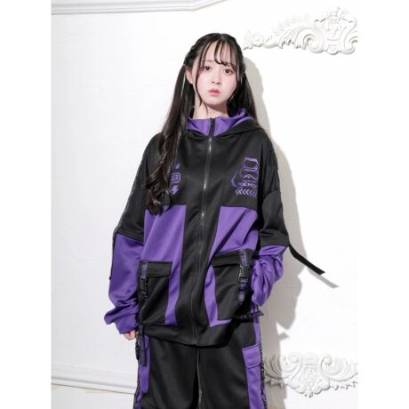 ネコミミフードが目を惹く、サイバーテイストのジップパーカー。