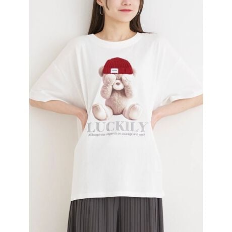 ニット帽をかぶったクマのデザインがキュートなアクセントをプラスするTシャツ。