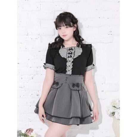 配色ヨークとフリルデザインが目を惹く、存在感のあるカットソー。