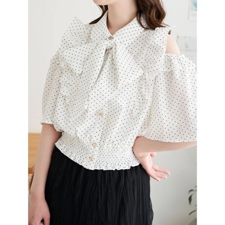 肩開きシャーリングブラウス