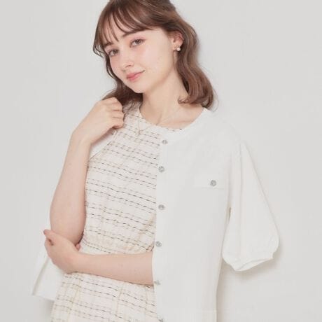 コンパクトなシルエットなので、ワンピースにもスカートにもバランス良く羽織れる一枚。