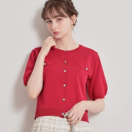 【洗える・着映え】ビジューボタン カーディガン