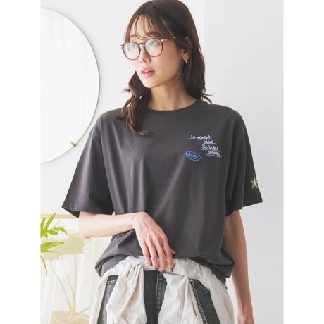 [型番:26560781494]ランダム刺しゅうのデザインがおしゃれなアクセントになるTシャツ。丸みのあるクルーネックのデザインが心地よいフィット感を演出します。肌触りのやさしいさらりとした着心地が魅力。ワイドパンツと合わせたカジュアルなスタイリングがおすすめです。モデル(濃グレー着用)身長:165cmMサイズ着用■機能・接触冷感