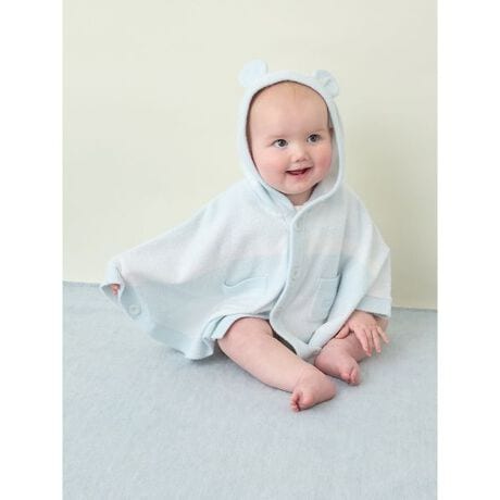 3層に重なる冷たいアイスクリームをイメージした、’スムーズィーライト'のグラデーションボーダーシリーズです。可愛いフードが付いた、さらっと羽織れるBABYサイズのポンチョ。毎日のルームウェアにはもちろん、夏のエアコンや窓辺の日差し対策などにもぴったりです。フロントポケットにロゴ刺繍入り。色は夏らしい涼しげなトーンのピンクとミントをご用意しました。同シリーズの雑貨と合わせたり、同時期のアイスクリームベアシリーズとのコーディネートもおすすめ。LADIES’、KIDSアイテムとリンク・コーディネートもお楽しみいただけます。