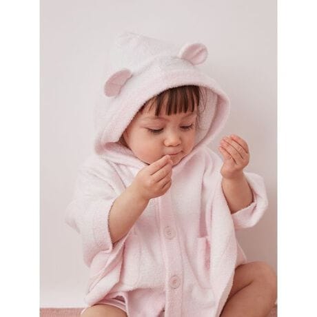 3層に重なる冷たいアイスクリームをイメージした、’スムーズィーライト'のグラデーションボーダーシリーズです。可愛いフードが付いた、さらっと羽織れるBABYサイズのポンチョ。毎日のルームウェアにはもちろん、夏のエアコンや窓辺の日差し対策などにもぴったりです。フロントポケットにロゴ刺繍入り。色は夏らしい涼しげなトーンのピンクとミントをご用意しました。同シリーズの雑貨と合わせたり、同時期のアイスクリームベアシリーズとのコーディネートもおすすめ。LADIES’、KIDSアイテムとリンク・コーディネートもお楽しみいただけます。