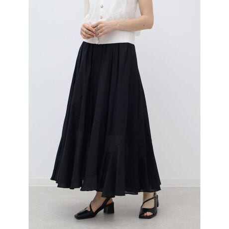 軽やかに揺れるシルエットが印象的なロングスカート。さりげない足元の透け感が軽やかさをプラス。たっぷりと分量を持たせたデザインが、動くたびに美しく広がり女性らしい印象を演出します。色鮮やかなグリーンやブルーを含んだ、豊富な4色展開。シンプルなデザインでスタイリングに馴染みやすく、おでかけスタイルから夏のリゾートスタイルにもおすすめの万能スカートです。