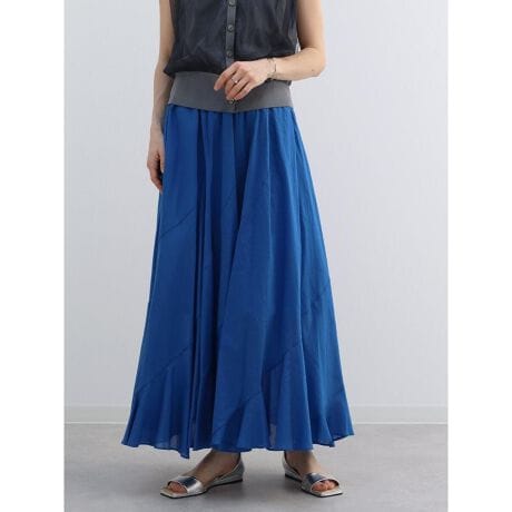 軽やかに揺れるシルエットが印象的なロングスカート。さりげない足元の透け感が軽やかさをプラス。たっぷりと分量を持たせたデザインが、動くたびに美しく広がり女性らしい印象を演出します。色鮮やかなグリーンやブルーを含んだ、豊富な4色展開。シンプルなデザインでスタイリングに馴染みやすく、おでかけスタイルから夏のリゾートスタイルにもおすすめの万能スカートです。