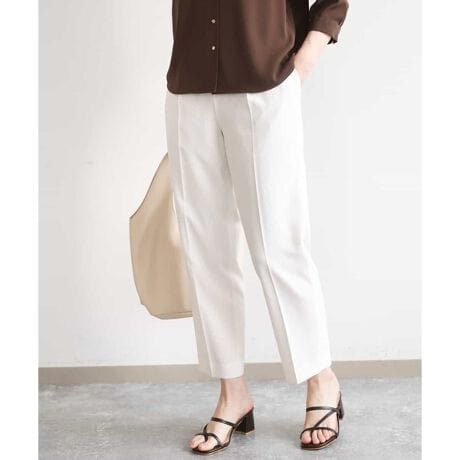 すっきりとしたテーパードシルエットが上品な印象のパンツ。プルオンデザインで、ウエストの締め付け感が少なく快適な穿き心地です。シンプルなデザインで、デイリーからお仕事まで幅広いシーンで活躍します。ホワイト(80)は透け防止のため、清涼感のある裏地付きです。