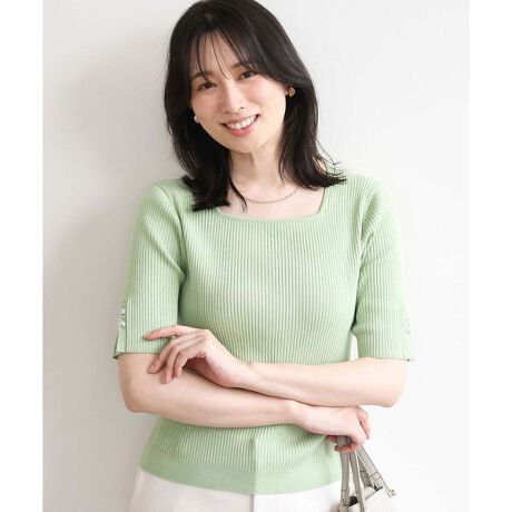 さりげないきらめきが華やぐ スクエアネックニットプルオーバー