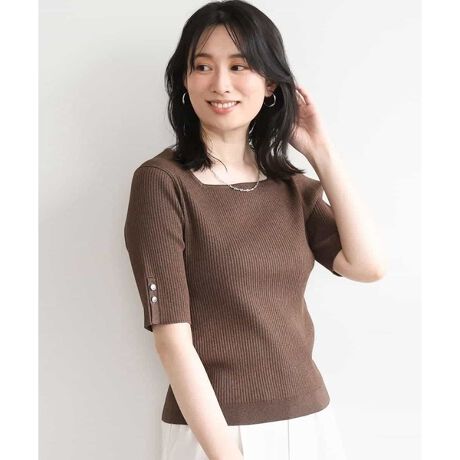 さりげないきらめきが華やぐ スクエアネックニットプルオーバー