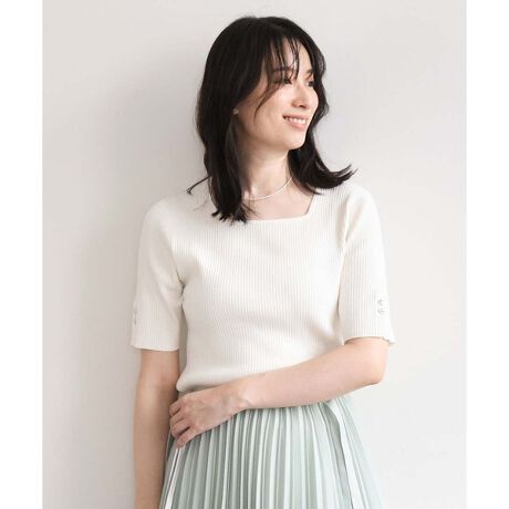 さりげないきらめきが華やぐ スクエアネックニットプルオーバー