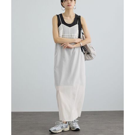 シアーキャミワンピースはパンツとのレイヤードも楽しめ、スタイリングの幅を広げてくれる一着です。