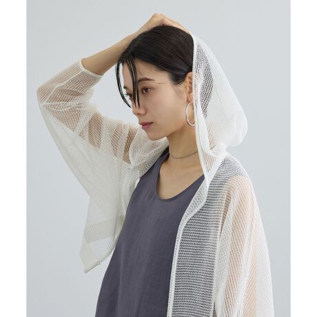 コットンリネンメッシュフードボレロ