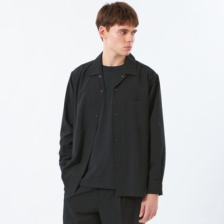 ビジネスシーンでも着用できるよう、襟は程よいサイズに設定し、ボックスシルエットでモダンなバランスに仕上げたシャツ型カバーオール。