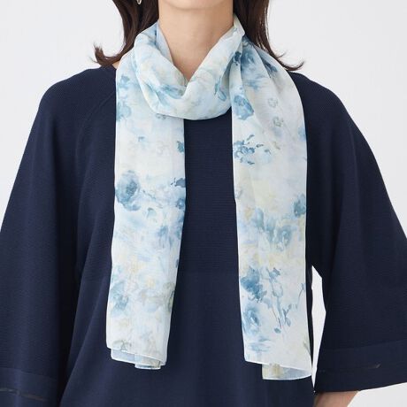 [型番:U1704718__]シフォンに手書き風の花柄をプリントしたイタリア製のストールです。スプリングコートの首周りにポイントカラーとして。または春先の寒さ対策としても使える、少し巾の細いストールです。
