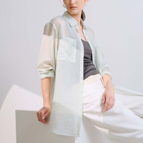 【きれい色シアー素材で真夏まで活躍!羽織れるエアリーシャツ】