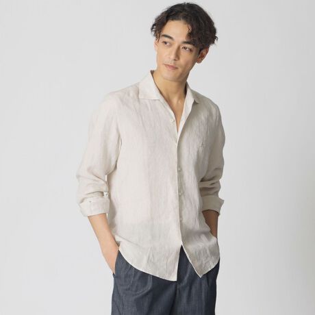 フレンチリネンを使用した、柔らかくしなやかで自然な光沢があるリネンシャツ。