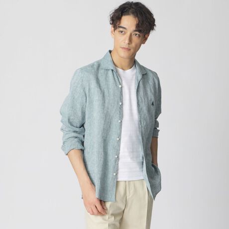 フレンチリネンを使用した、柔らかくしなやかで自然な光沢があるリネンシャツ。