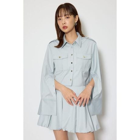 【ワークデザインを盛り込んだ構築的シャツTOPS】■ポイントワークデザインをriendaらしくキレイ目スタイルに落とし込みました。釦もゴールドにすることで、デザインにエッジを効かせて1枚で決まります。シャツの前後差もついているので、抜け感のある印象で着用いただけます。■ディテール大き目のタックポケット、太めのステッチ、エポレット、様々なデザインポイントが喧嘩しないようシルエットはシンプルに落とし込みました。生地には繊細なストーンをちりばめ、動くたびに繊細に輝きます。■スタイリング110JS531-1051 デコラティブバルーンミニSKと同じ生地で作成し、セットアップも楽しめるようデザインしました。デニムと合わせたり、羽織としてもお使いいただけます。■生地透け感:なし裏 地:なし伸縮性:なし光沢感:なし厚 さ:薄手■商品のお気に入り登録お気に入りアイテムの再入荷・在庫1点などの通知を受け取ることができます。[注意事項]※画像の商品はサンプルです。実際の商品と仕様、加工が若干異なる場合があります。※画像の商品は光の照射や角度、お使いのモニター環境により、実物と色味が異なる場合がございます。※着用、お取り扱いの際は、アテンションタグをご確認ください。