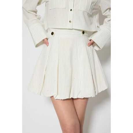 【繊細なストーンがちりばめられた、ニュアンスバルーンミニSK】■ポイント繊細なストーンを配置した生地で作成したバルーンミニSKがriendaからお目見え。ストーンがぎらつきすぎないよう、サイズや配置にも細かく拘りました。ウエストのベルトデザインがウエストをマークしスタイルアップ効果も◎裏地はショートパンツの形になっているので、安心してご着用いただけるのも嬉しいポイントです。■ディテールウエスト位置が高く見えるようハイウエストデザインを採用。バルーンもギャザー分量を調節し、やりすぎない、シックなシルエットに落とし込みriendaにしかないバルーンシルエットを作製しました。ボリューム感を抑え裾巾はきちんと出し、Aラインシルエットを作っているので、キレイ目なバルーンスカートコーディネートをお楽しみいただけます。■スタイリング110JS530-1041 ワークディティールクロップドSHと同じ生地で作成し、セットアップも楽しめるようデザインしました。ニットのトップスやTシャツなど、幅広く使っていただける1着です。■生地透け感:なし裏 地:あり伸縮性:なし光沢感:なし厚 さ:薄手■商品のお気に入り登録お気に入りアイテムの再入荷・在庫1点などの通知を受け取ることができます。[注意事項]※画像の商品はサンプルです。実際の商品と仕様、加工が若干異なる場合があります。※画像の商品は光の照射や角度、お使いのモニター環境により、実物と色味が異なる場合がございます。※着用、お取り扱いの際は、アテンションタグをご確認ください。