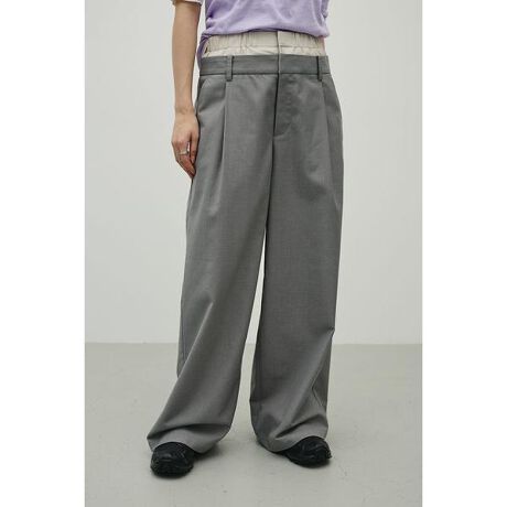 モデル身長163cm(Mサイズ着用)ローウエストのデザインにレイヤードディテールを重ねたモード感のあるパンツ。腰まわりにニュアンスを出しつつ、ストレートシルエットが脚のラインをすっきりと見せてくれます。トップスをインすればデザインが引き立ち、アウトで着ればさりげないアクセントに。シャツやジャケットを合わせたスタイリングから、カジュアルなカットソーとの組み合わせまで幅広く対応でき、コーディネートに新鮮さをプラスしてくれる一枚です。ストレッチなし、透け感なし。【お手入れ方法】マシンウォッシュ可