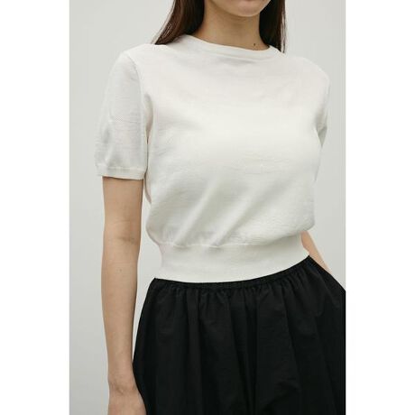 モデル身長163cm(FREEサイズ着用)抽象的な花柄をジャガード編みで仕立てた軽やかで清涼感のあるニット。袖口と裾はリブで引き締め、着用するとパフっと丸みのあるシルエットでポイント。デニムと合わせたカジュアルスタイルやスカートと合わせたフェミニンスタイルもおすすめです。透け感WHTややあり、ストレッチあり。【お手入れ方法】手洗い可
