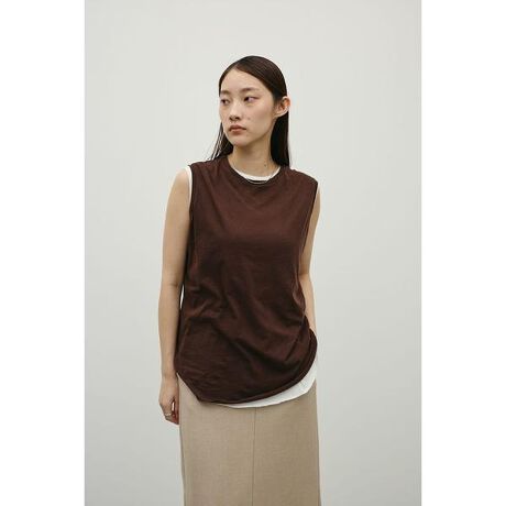 [型番:500JSM80-3241]モデル身長163cm(FREEサイズ着用)【色違いで購入多数 人気のシアーバックシームシリーズ】程よい透け感のルーズなタンクトップは、脇接ぎをなくし肩線も後ろ倒しにした、すっきりとしたディテールにこだわった一枚。ラウンドヘムでインもアウトもしやすい丈感で着回し力抜群な優秀カットソー。透け感あり、ストレッチあり。【お手入れ方法】手洗い可