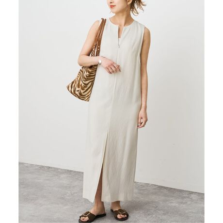 メランジカラーで程よいカジュアル感のある素材に仕上げたIラインワンピース。