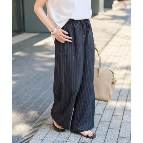 真夏にも快適に穿ける、ドライタッチなジョーゼット素材を使用したイージースラックス。