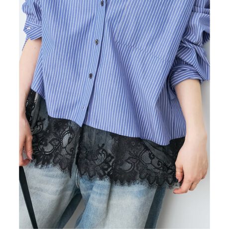 軽やかなレースがポイントのタイプライターシャツ。