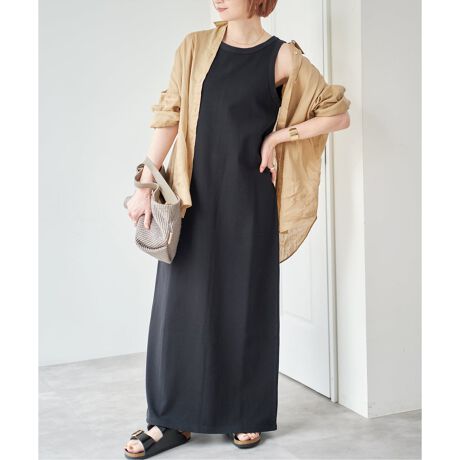 一枚着でも透け感が気にならないやや肉厚でラフな表情がポイントの天竺を使用したワンピース。