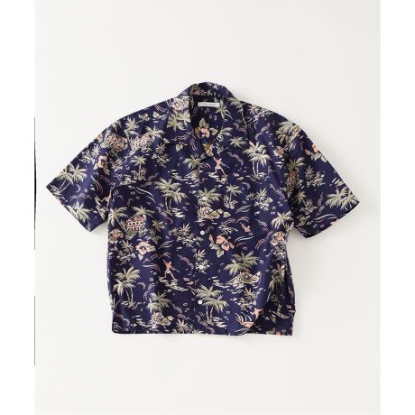 スレン抜染で表現されたアロハ柄の生地を使用した一着。