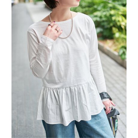 ウエストから切り替えたペプラムデザインが、女性らしいシルエットを引き立てるカットソー。