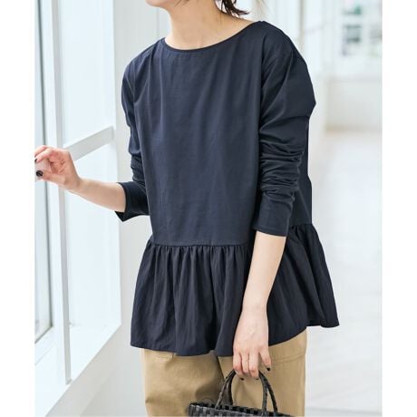 ウエストから切り替えたペプラムデザインが、女性らしいシルエットを引き立てるカットソー。