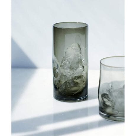 ガラスに光が反射し、透明感や視覚的な美しさと相まって、モダンでスタイリッシュなグラス。