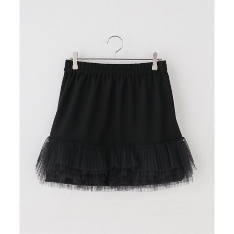 トップスのインナーに合わせて、裾からチュールをのぞかせるレイヤードスタイルもおすすめ。