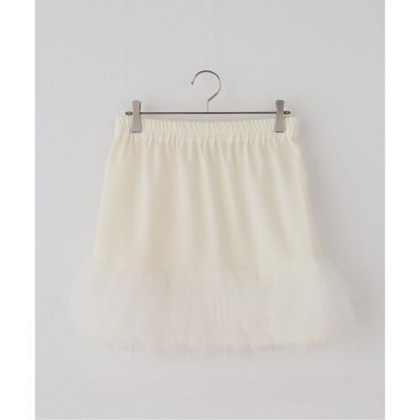 トップスのインナーに合わせて、裾からチュールをのぞかせるレイヤードスタイルもおすすめ。