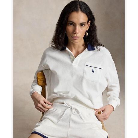 胸ポケットのシグネチャーのポニー刺繍でアクセントを効かせた、長袖のポロシャツ。コットン混紡のフレンチテリーを使用し、薄手ながらも暖かく、柔らかな着心地を実現・リラックスフィット / 腰丈・リブのポロカラー / 2つボタンの前立て・長袖、リブカフス・左胸にパッチポケット / ポケットにシグネチャーのポニー刺繍とコントラストの効いたパイピングトリム・リブの裾・モデル身長178cm、着用サイズS 【素材】・本体:綿 80%、ポリエステル 20% 装飾部分を除く【生産国】インド