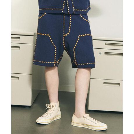 ワークパンツ風のステッチワークをリラックスしたムードで楽しんでください。