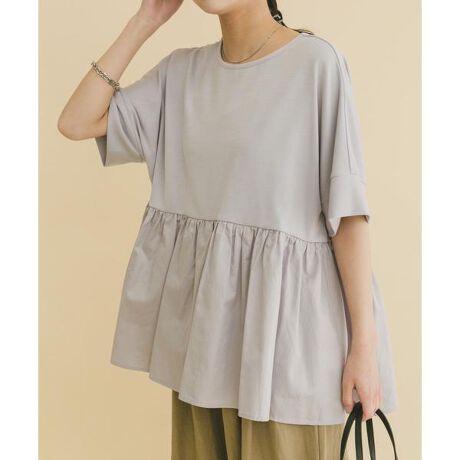 毎シーズン支持を集めている、異素材ドッキングデザインの半袖トップス。滑らかなポンチ素材とハリ感のある素材を組み合わせ、上半身はやさしく、裾にかけてふんわりと広がるシルエットに仕上げました。自然に体のラインをカバーしながら、すっきりとした印象をキープ。さりげないディテール使いと着心地の良さで、長く愛されてきた理由を感じられる一着です。日常に取り入れやすく、毎年手に取りたくなる定番アイテム。